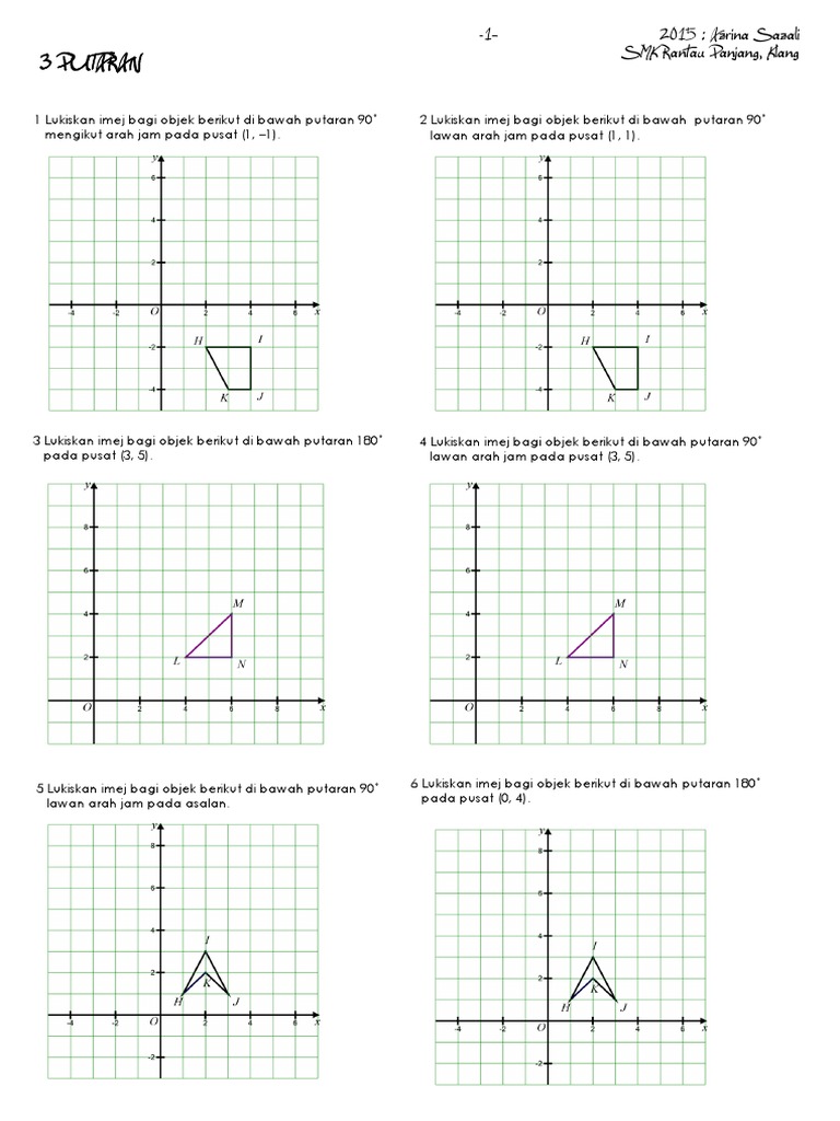 Dan menggambarkan kedudukan imej selepas putaran atau kedudukan objek sebelum putaran. Dengan fungsi GSP yang melabelkan penjuru-penjuru sesuatu bentuk yang diputarkan serta fungsi melukis garis serenjang pelajar dapat menentukan paksi putaran melalui persilangan garis-garis serenjang tersebut. 100 4 100 found this document useful 4 votes 264 views 2 pages.